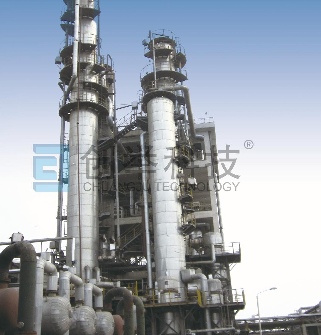 哈爾濱某廠80噸系統(tǒng),原設(shè)計塔內(nèi)件為固閥塔盤,運行周期只有一個月。我公司針對該塔的堵塞問題,成功研發(fā)了膜噴無返混無濃度梯度塔盤。