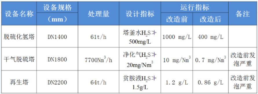胺液是一種在濕法脫硫過程中經(jīng)常用到的溶液。由于其具有極易發(fā)泡的性質(zhì),干氣脫硫塔和再生塔在運行過程中都存在溶劑發(fā)泡淹塔的情況。且干氣脫硫塔較為明顯,出現(xiàn)全塔壓差增大,凈化干氣帶液嚴(yán)重的現(xiàn)象。在裝置整體未達(dá)到設(shè)計負(fù)荷的情況下,再生塔存在塔頂酸性氣產(chǎn)量較設(shè)計量大帶液嚴(yán)重的情況。