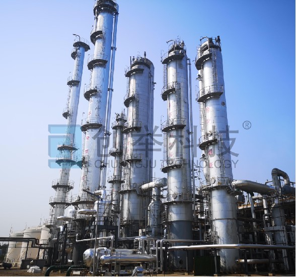 “五塔三效”甲醇精餾熱耦合工藝包技術(shù),原雙效精餾技術(shù)的延伸,主體設(shè)備增加一個加壓塔或負(fù)壓塔。是由前一個塔塔頂氣相作為后一個塔再沸器的熱源,比原雙效精餾技術(shù)多了一效,可進(jìn)一步節(jié)能。噸甲醇的蒸汽耗量可以由雙效的1.1~1.2降低到0.8~0.9,而且產(chǎn)品質(zhì)量高。該流程具有技術(shù)可靠、處理能力大、產(chǎn)品質(zhì)量高、噸甲醇蒸汽耗量低等優(yōu)點。特別適合于現(xiàn)有裝置的擴(kuò)能改造。