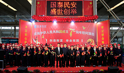 2019年10月12日為慶祝中華人民共和國成立70周年,天津市創(chuàng)舉科技股份有限公司(以下簡稱“創(chuàng)舉公司”)邀請紅楓藝術(shù)團(tuán)舉辦“不忘初心、牢記使命”專場慰問演出。創(chuàng)舉公司中高層領(lǐng)導(dǎo)及子公司一線生產(chǎn)員工近百人出席觀看。