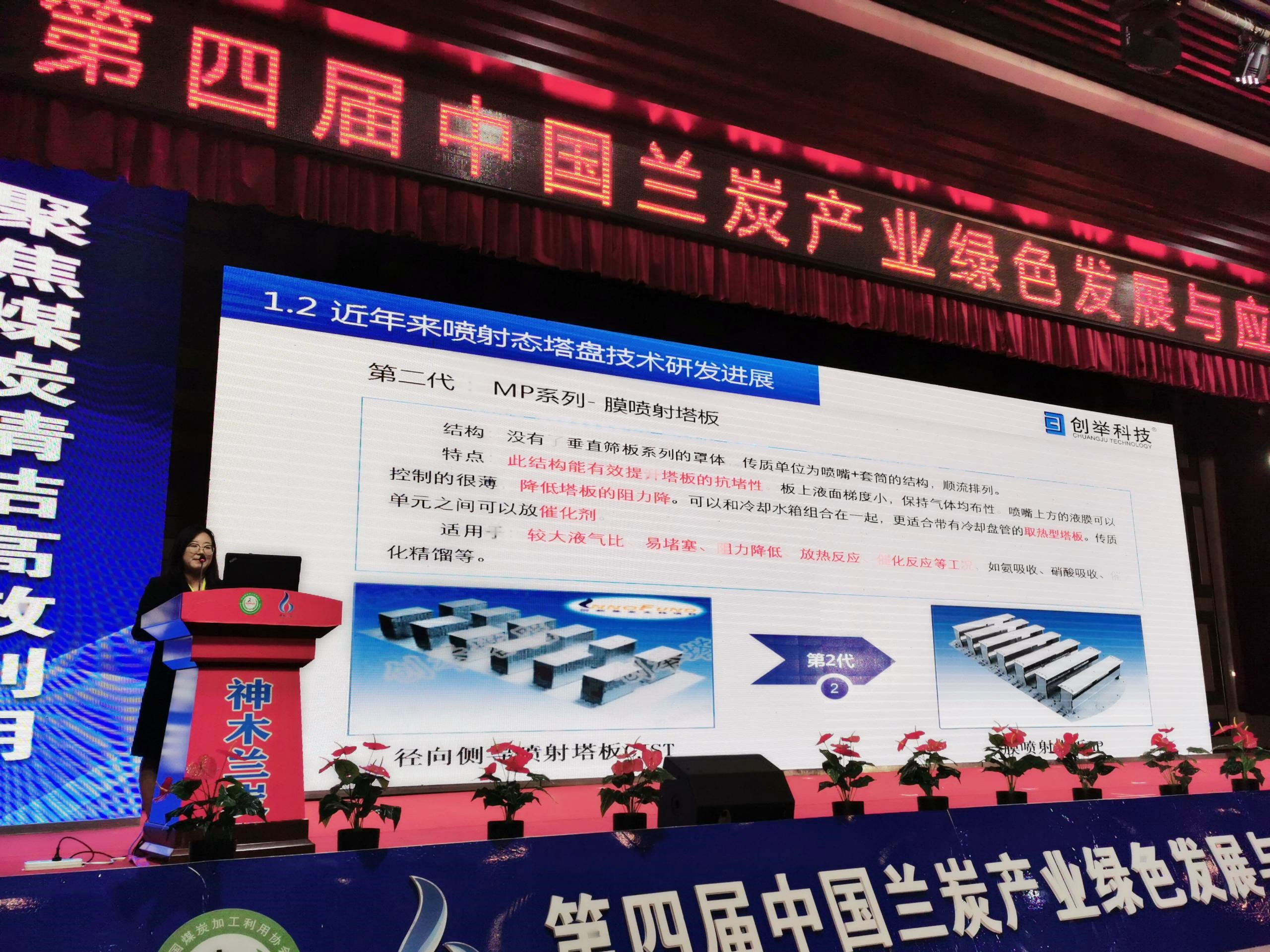 創(chuàng)舉科技技術部長趙順雯以《高效噴射塔盤技術在蘭炭及煤化工領域的廣泛應用》為題展開精彩的演講,會上創(chuàng)舉科技高效噴射態(tài)塔盤技術受到了與會專家的廣泛關注。