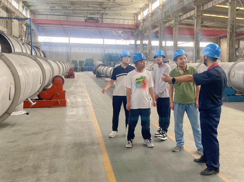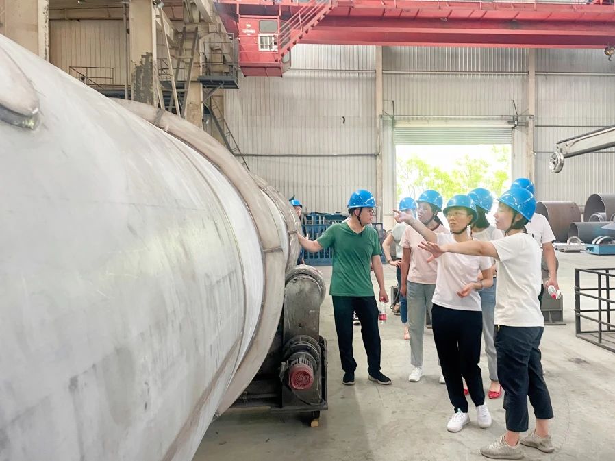 公司組織新員工到生產制造中心實地參觀學習。 對公司生產工藝流程、設備加工及設備原材料等進行全方位的認識了解。