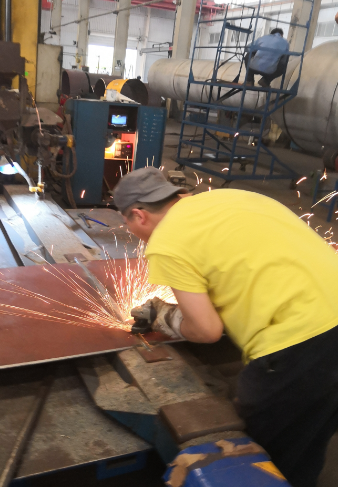 接下來開始熟悉各個(gè)車間的加工工序。全廠共有七個(gè)生產(chǎn)車間:容器車間、內(nèi)件車間、填料車間、探傷室、鈦材焊接專用室、零部件焊接車間、噴砂房、焊材庫、大五金庫、小五金庫。每個(gè)車間職能都不同,每道工序緊密銜接,如果其中任何一道工序出現(xiàn)問題,都將會(huì)影響下面工序的進(jìn)行。因此,每一項(xiàng)工作都應(yīng)該認(rèn)真完成。