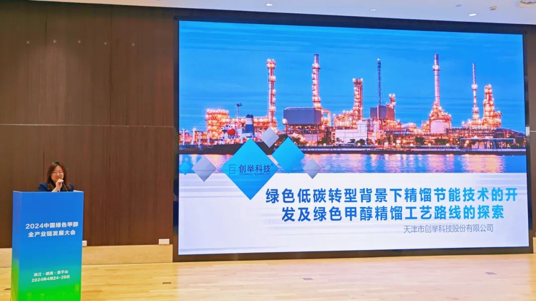 創(chuàng)舉科技應(yīng)邀上臺發(fā)表以《綠色低碳轉(zhuǎn)型背景下精餾節(jié)能技術(shù)的開發(fā)及綠色甲醇精餾工藝路線的探索》為主題的精彩演講。