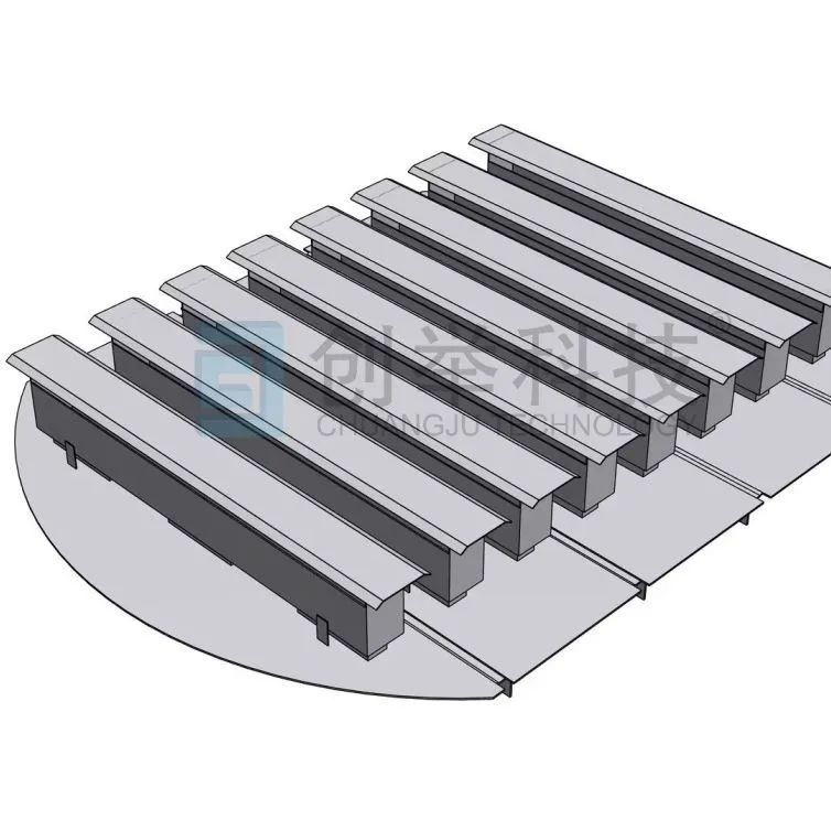 CJMP系列(膜噴射系列塔板)是在新型 垂直篩板 的基礎(chǔ)上開發(fā)的專利產(chǎn)品,該塔板起初是為解決塔板抗堵問題而開發(fā),后又?jǐn)U展到低阻力降吸收物系以及取熱型塔板等。