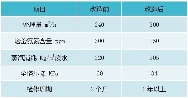 2019年更換為我公司CJVP塔板后,裝置運行穩(wěn)定,檢修周期延長,處理量擴大25%,蒸汽消耗節(jié)省5%以上,改造前后數(shù)據(jù)對比如下: