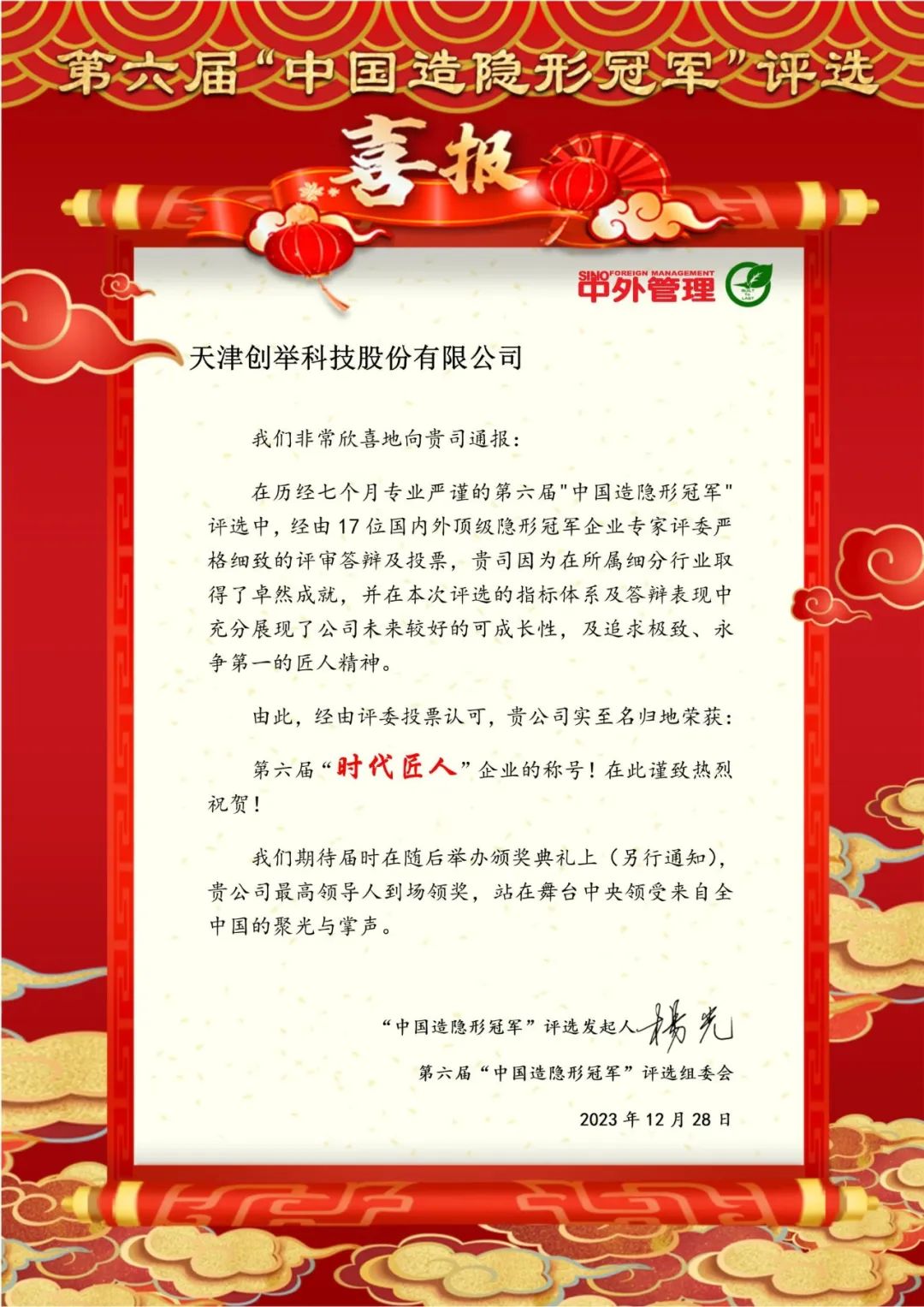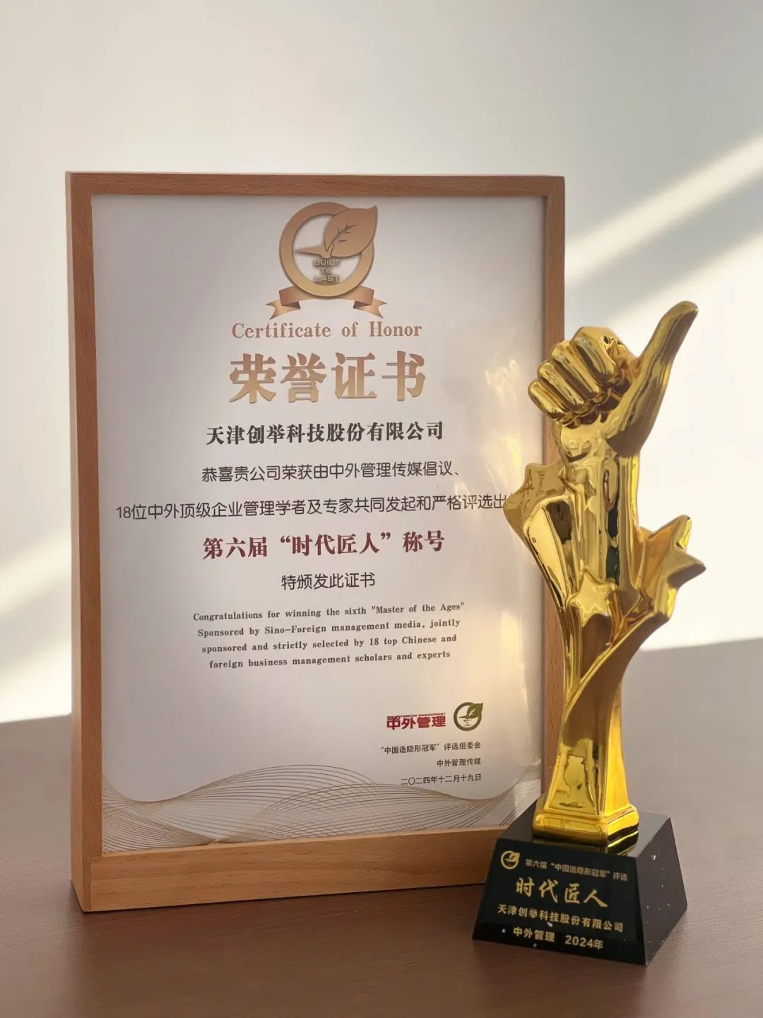 經(jīng)過18位國內(nèi)外頂級企業(yè)實戰(zhàn)派專家、著名商學(xué)院院長、投資機構(gòu)、媒體等多方嚴(yán)謹(jǐn)細(xì)致評定,天津市創(chuàng)舉科技股份有限公司榮獲“時代匠人”企業(yè)稱號。