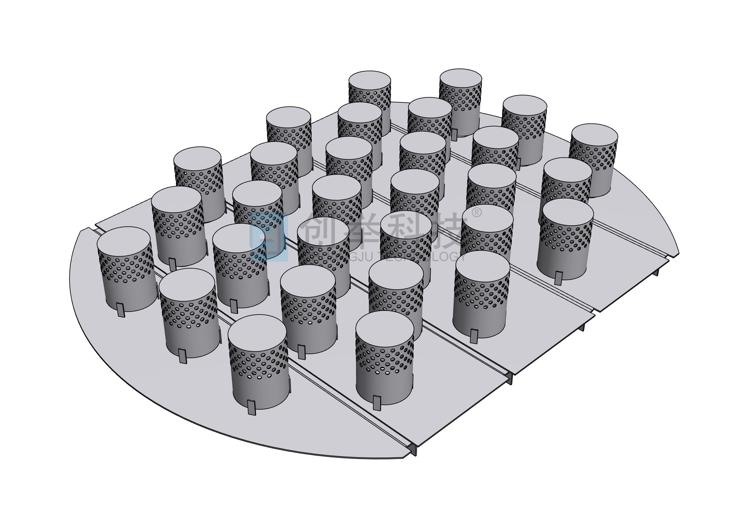 CJST系列(徑向側導系列噴射型塔板)是創(chuàng)舉公司在新型垂直篩板的基礎上研發(fā)的專利塔板,該塔板在噴射方向上具有一定的導向作用,彌補了新型垂直篩板在實際應用中存在的一些不足。